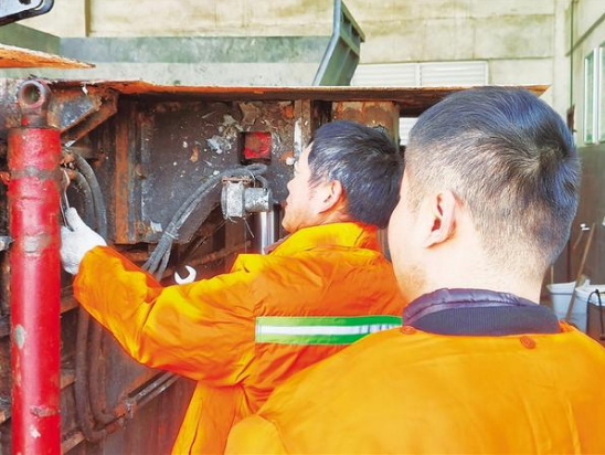 市環(huán)衛(wèi)中心工作人員對(duì)垃圾中轉(zhuǎn)站的設(shè)備進(jìn)行檢修。春節(jié)將至,周口中心城區(qū)生活垃圾產(chǎn)量持續(xù)攀升,垃圾收集轉(zhuǎn)運(yùn)任務(wù)進(jìn)入高峰期。