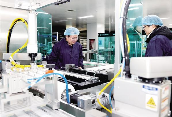 從金丹科技年產(chǎn)7.5萬(wàn)噸聚乳酸生物降解新材料項(xiàng)目建設(shè)現(xiàn)場(chǎng),到巨鑫生物制藥的智能化生產(chǎn)線;從百年康鑫藥業(yè)中藥抗病毒口服液灌裝車(chē)間,到兆億傘業(yè)縫制車(chē)間里工人們指尖翻飛的忙碌身影……進(jìn)入四季度,鄲城縣動(dòng)員全縣上下以“拼”的精神、“闖”的勁頭、“干”的作風(fēng),奮力沖刺全年經(jīng)濟(jì)社會(huì)發(fā)展目標(biāo)。圖為百年康鑫藥業(yè)智能化生產(chǎn)線。