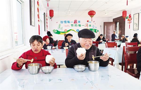 1月25日,冬日的暖陽(yáng)透過(guò)鄲城縣汲冢鎮(zhèn)敬老院餐廳的玻璃窗,灑在餐廳“珍惜每一粒米 節(jié)約每一滴水”的標(biāo)語(yǔ)上。