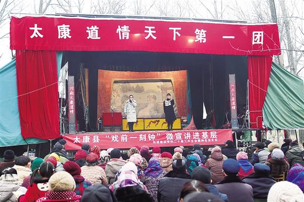去年以來,太康縣積極開展“戲前一刻鐘”微宣講進(jìn)基層活動,組織文藝工作者向廣大群眾宣傳黨的好政策、傳播黨的“好聲音”,讓黨的創(chuàng)新理論飛入千家萬戶。