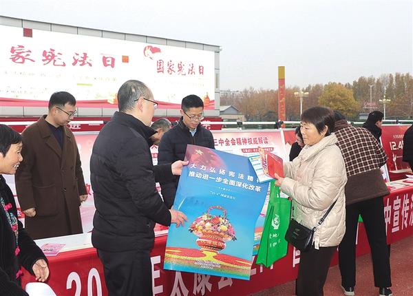 近日,太康多個(gè)單位在縣人民廣場舉行“12·4”國家憲法日集中宣傳活動(dòng),向廣大群眾普及憲法知識,引導(dǎo)廣大群眾牢固樹立憲法意識、維護(hù)憲法權(quán)威。縣長張峰,縣領(lǐng)導(dǎo)邱范卉、劉鳳芹、王洪彬、史耀閣等到場參觀指導(dǎo)。