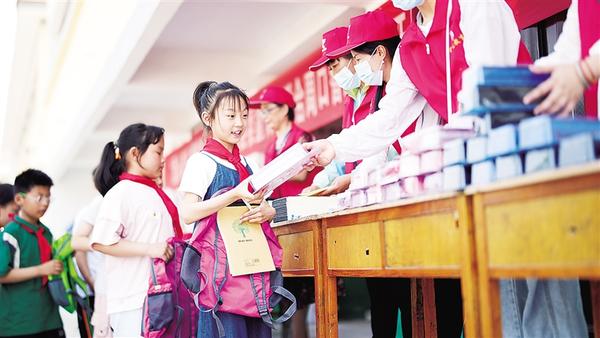 5月22日,扶溝縣江村鎮(zhèn)張龐小學(xué)的學(xué)生領(lǐng)到“六一”禮物?!傲弧眱和?jié)前夕,扶溝縣委宣傳部聯(lián)合我市一家教育公司走進(jìn)扶溝縣江村鎮(zhèn)張龐小學(xué),開展“愛心牽手 情暖童心”迎“六一”愛心捐贈活動,為該校50名留守兒童送去價值4600元的書包、筆、本、文具盒等物品及節(jié)日的祝福。