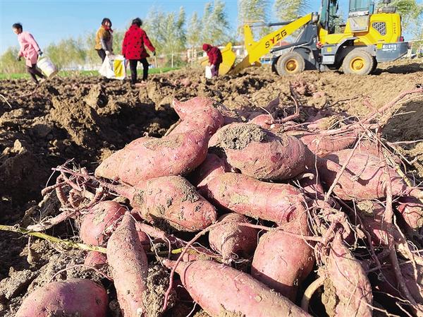 近日,記者走進(jìn)商水縣平店鄉(xiāng)紅薯種植基地,只見挖薯機(jī)在地里來回穿梭,一顆顆豐碩飽滿的紅薯破土而出,色澤鮮亮、甚是喜人。村民們有的跟在挖薯機(jī)后翻撿,有的忙著分揀、裝袋、搬運(yùn)、裝車……大家迎著“薯”光忙得不亦樂乎,盡享豐收的喜悅。