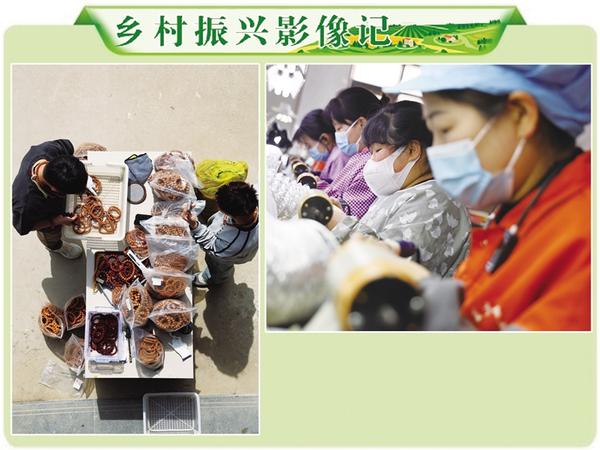 淮陽(yáng)區(qū)葛店鄉(xiāng)回龍集村民依托傳統(tǒng)核桃雕刻技藝,創(chuàng)新打造“工廠+數(shù)字電商”融合發(fā)展模式,構(gòu)建起“原料加工—?jiǎng)?chuàng)意設(shè)計(jì)—雕刻生產(chǎn)—電商營(yíng)銷”全鏈條文玩產(chǎn)業(yè)體系,成為鄉(xiāng)村振興背景下電商賦能的典型案例。圖為4月1日村民在車間加工文玩核桃(上)及通過(guò)直播平臺(tái)銷售產(chǎn)品(左)的場(chǎng)景。