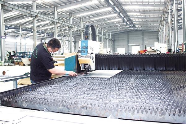 日前,在位于太康縣開發(fā)區(qū)的河南銀星畜牧設(shè)備有限公司生產(chǎn)車間,工人對鋼板進行切割作業(yè)。