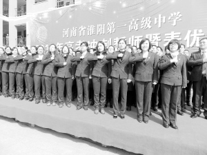 3月21日,淮陽(yáng)一高舉行 “高考百日沖刺”誓師大會(huì)。校長(zhǎng)王業(yè)生及高一、高二、高三年級(jí)全體師生參加了會(huì)議。青年教師代表付士翔、家長(zhǎng)代表張鳳啟及學(xué)生代表分別進(jìn)行了充滿(mǎn)激情的發(fā)言。在距2015年高考還有100天的日子里,師生莊嚴(yán)宣誓:“以頑強(qiáng)的意志、百倍的激情、無(wú)窮的潛力,以最刻苦的精神、最堅(jiān)韌的毅力,全力以赴,奮勇?tīng)?zhēng)先,爭(zhēng)分奪秒,苦戰(zhàn)百日,決戰(zhàn)高考,誓創(chuàng)輝煌。”(豆紀(jì)鋒 攝)