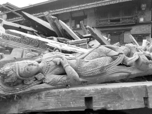4月26日,在尼泊爾加德滿都郊外20公里的叁庫,震后街道一片狼藉。 新華社發(fā)