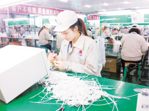 昨日,在三星手機耳機供應商日立亞電子淮陽有限公司生產(chǎn)車間,工人們正在生產(chǎn)線上忙碌著?;搓柨h近年來積極實施“工業(yè)強縣、旅游突破、城鄉(xiāng)統(tǒng)籌、四化同步”發(fā)展戰(zhàn)略,不斷調(diào)整工業(yè)產(chǎn)業(yè)結(jié)構(gòu),增加企業(yè)科技含量,以提升產(chǎn)品質(zhì)量和市場競爭力,促進經(jīng)濟轉(zhuǎn)型升級。(記者 侯俊豫 攝)