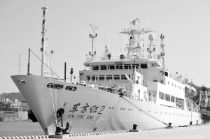“東方紅2號”海洋綜合調(diào)查船赴南海進行科學(xué)考察 5月10日,“東方紅2號”調(diào)查船在國家海洋局青島海洋科學(xué)考察基地碼頭整裝待發(fā)。當(dāng)日,“東方紅2號”海洋綜合調(diào)查船從國家海洋局青島海洋科學(xué)考察基地啟航,赴南海進行為期兩個月的科學(xué)考察。新華社記者 張建松 攝
