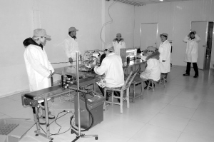 北京中浩丹(鄲城)食品有限公司視質量為生命,嚴把產品質量關,確保生產的浩丹小磨香油、浩丹純凈水、浩丹調味品等系列產品合格率達100%。圖為技術人員正在檢測產品質量。記者 盧好亮 通訊員 丁宇濤 攝