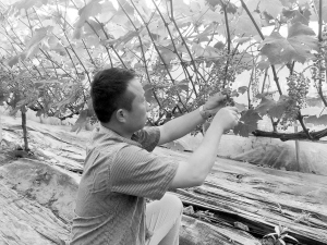商水縣鄧城生態(tài)葡萄采摘園里,果農(nóng)忙著給掛滿果的葡萄藤疏果,把間距太近和生長(zhǎng)稀疏以及串型不好的葡萄剪掉,留下健壯的葡萄串。目前,該采摘園100余畝玫瑰味、草莓味、菠蘿味、櫻桃味等品種的葡萄長(zhǎng)勢(shì)喜人,豐收在望。