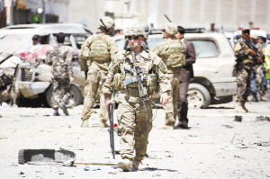 阿富汗喀布爾機場附近發(fā)生爆炸 5月17日,士兵在阿富汗首都喀布爾發(fā)生爆炸的現場查看。阿富汗首都喀布爾機場附近17日發(fā)生一起自殺式爆炸襲擊,造成至少3人死亡、18人受傷。 新華社發(fā)