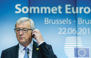 6月22日,在比利時(shí)布魯塞爾的歐盟總部,歐盟委員會(huì)主席容克在歐元區(qū)領(lǐng)導(dǎo)人緊急峰會(huì)后出席新聞發(fā)布會(huì)。 歐洲理事會(huì)主席圖斯克在會(huì)后新聞發(fā)布會(huì)上說,希臘提交的新版改革方案是“積極的一步”,歐元集團(tuán)將于24日完成對(duì)新方案的評(píng)估。