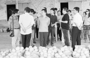 本報(bào)訊 (記者 王泉林 通訊員 史曉康 郭威) 6月16日至17日,北京一畝田集團(tuán)總裁鄧錦宏率領(lǐng)公司高層管理人員近30人到扶溝考察果蔬生產(chǎn)和銷(xiāo)售情況,并就建立公共交易場(chǎng)所等事宜與當(dāng)?shù)攸h政領(lǐng)導(dǎo)、蔬菜園區(qū)經(jīng)營(yíng)者、果蔬經(jīng)紀(jì)人進(jìn)行深入交流。