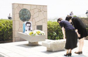 聶耳逝世80周年紀念活動在日舉行 7月11日,在日本神奈川縣藤澤市鵠沼海岸,參加活動的日本友好人士向聶耳紀念碑獻花并鞠躬。為紀念人民作曲家聶耳逝世80周年,中國駐日本大使館和東京都日中友協當天在位于鵠沼海岸的聶耳紀念碑前舉行紀念活動。包括日本友好人士、藤澤市政府和市民代表、在日華僑華人等150人聚集在紀念碑前,共同追思聶耳。新華社發(fā)