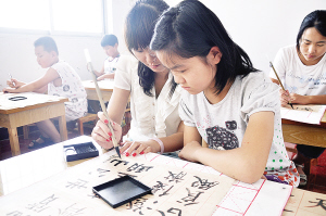 書畫相輔相成 為弘揚“書畫同源”的中國傳統(tǒng)藝術(shù),本中心常年班采取書畫相輔相成的教學方法,毛筆與硬筆相結(jié)合、書法與繪畫教學交替進行,以求事半功倍的教學效果。