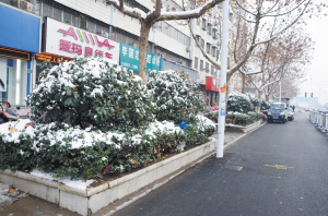 八一大道(黃河路至交通大道段)兩旁,快車道去年剛修好,人行道還未整修。由于是老路段,每隔幾米都有用花崗巖砌的長六七米、寬一兩米、高半米的綠化池,里面栽種了冬青等。不過因年久失修,很多池子破敗不堪,邊石殘缺不全。據(jù)附近一經(jīng)營糖煙酒的商戶介紹,這些綠化池有數(shù)十年了,又臟又難看,希望有關(guān)部門整一整。