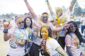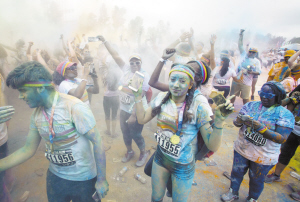 當(dāng)?shù)貢r(shí)間6月13日,在美國(guó)洛杉磯,約萬(wàn)名跑步愛好者在洛杉磯道奇球場(chǎng)外參加“彩色跑”活動(dòng)。“彩色跑”是一項(xiàng)娛樂跑步項(xiàng)目,全程為5公里,每公里設(shè)置一個(gè)彩色站,當(dāng)參與者跑至彩色站時(shí),由志愿者向參與者拋灑彩色粉末。與傳統(tǒng)跑步競(jìng)速相比,“彩色跑”活動(dòng)雖然沒有贏家或獎(jiǎng)品,但強(qiáng)調(diào)“參與、娛樂和色彩”的重要性。